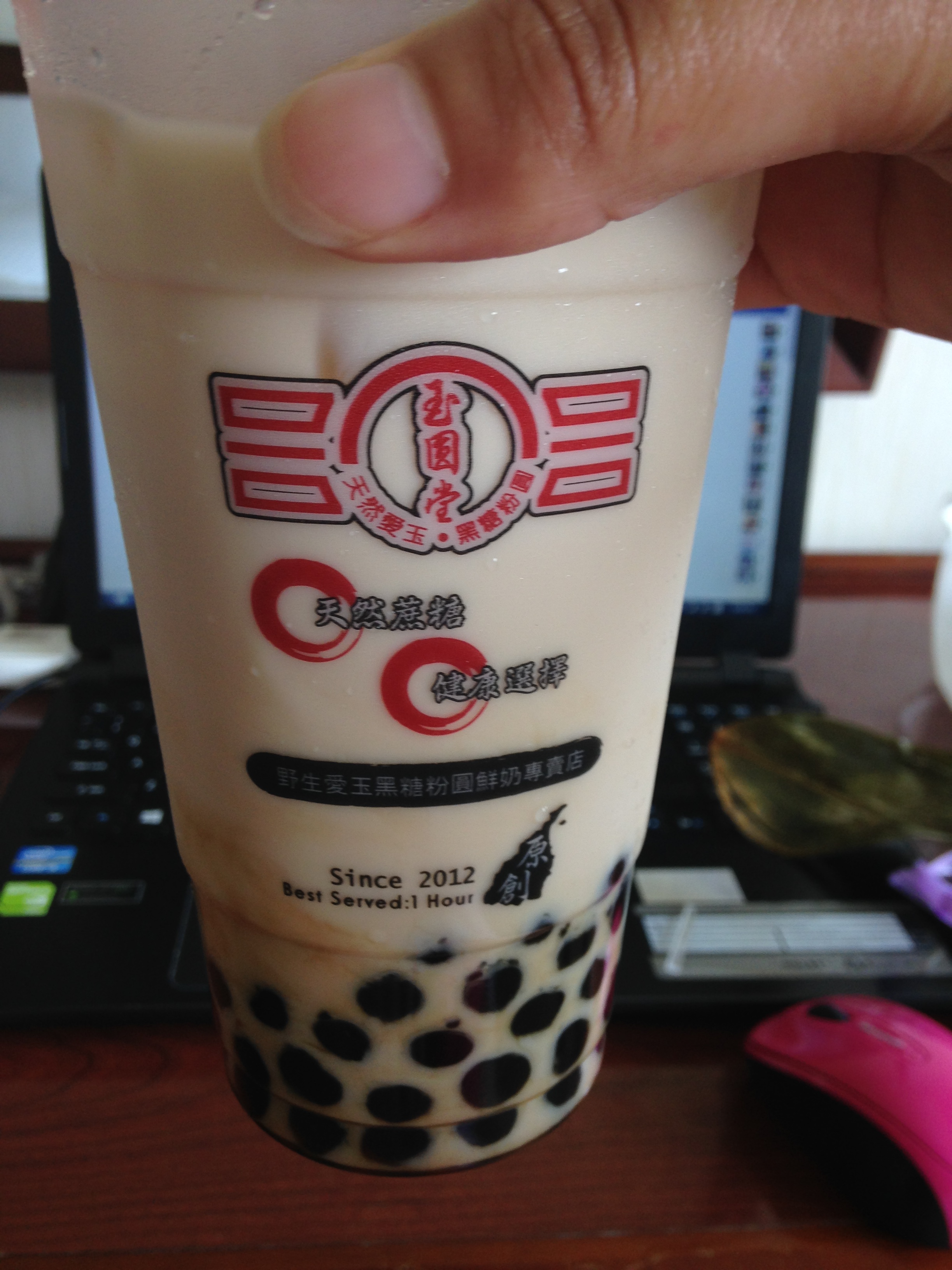 …as well as a drink Mr. Tseng’s younger brother called a specialty of Yilan. Fresh Milk with Brown Sugar syrup and I think Brown Sugar tapioca balls [黑糖粉圓鮮奶]..