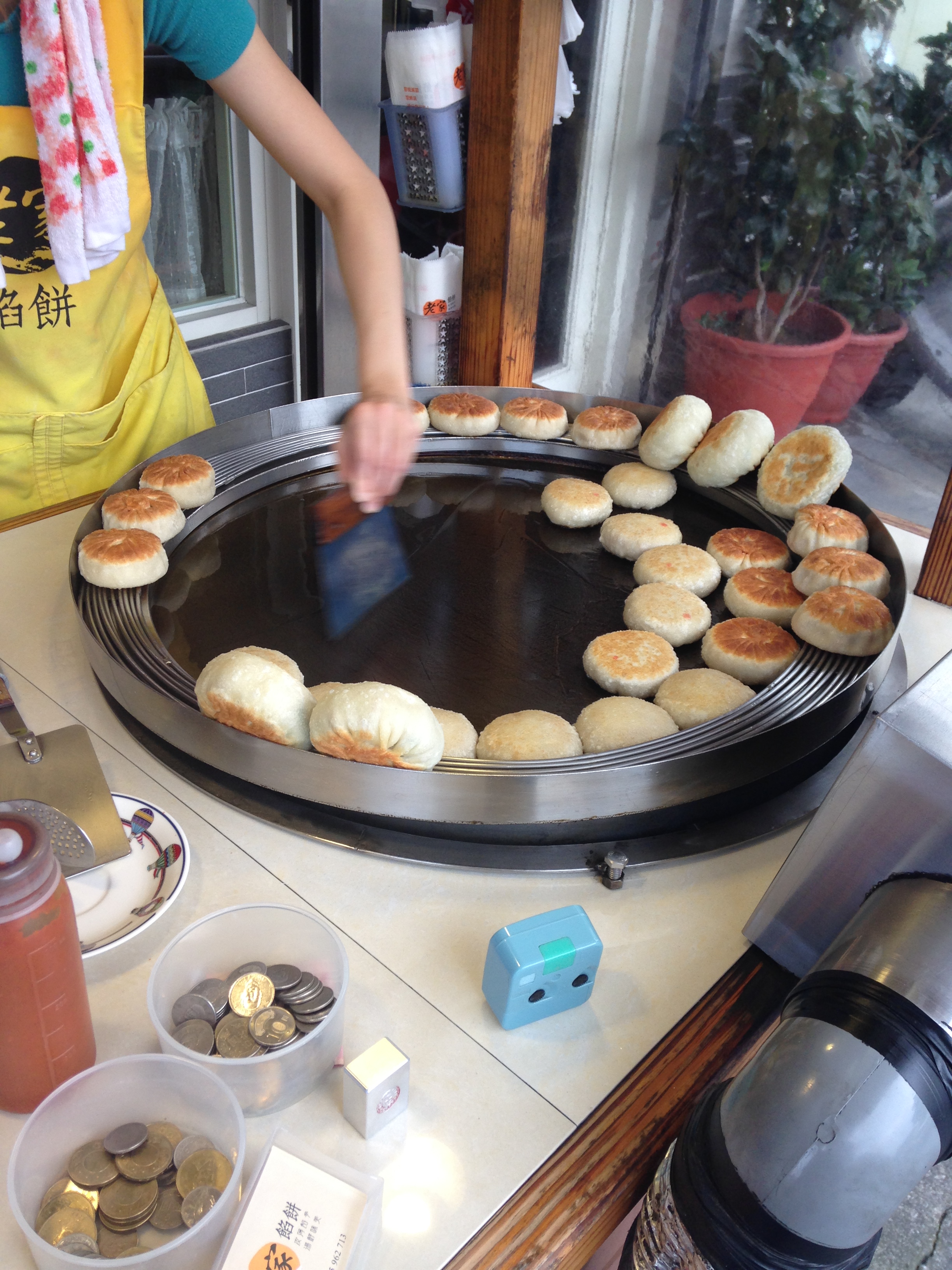 First I met this lovely young woman at this lovely little snack stall [老家餡餅] on one of Luodong‘s Streets. She smiled friendly and waited patiently as I typed some characters I didn’t know into my phone. She spoke slowly after I asked her for one [豬肉餡餅] and — even though the vocabulary she chose to translate into English for me were the simplest of words, I appreciated her kindness in clarifying to me in a language she thought I would understand better. She still spoke with me in Chinese, though, which I also appreciated. Some people give up on me too early.