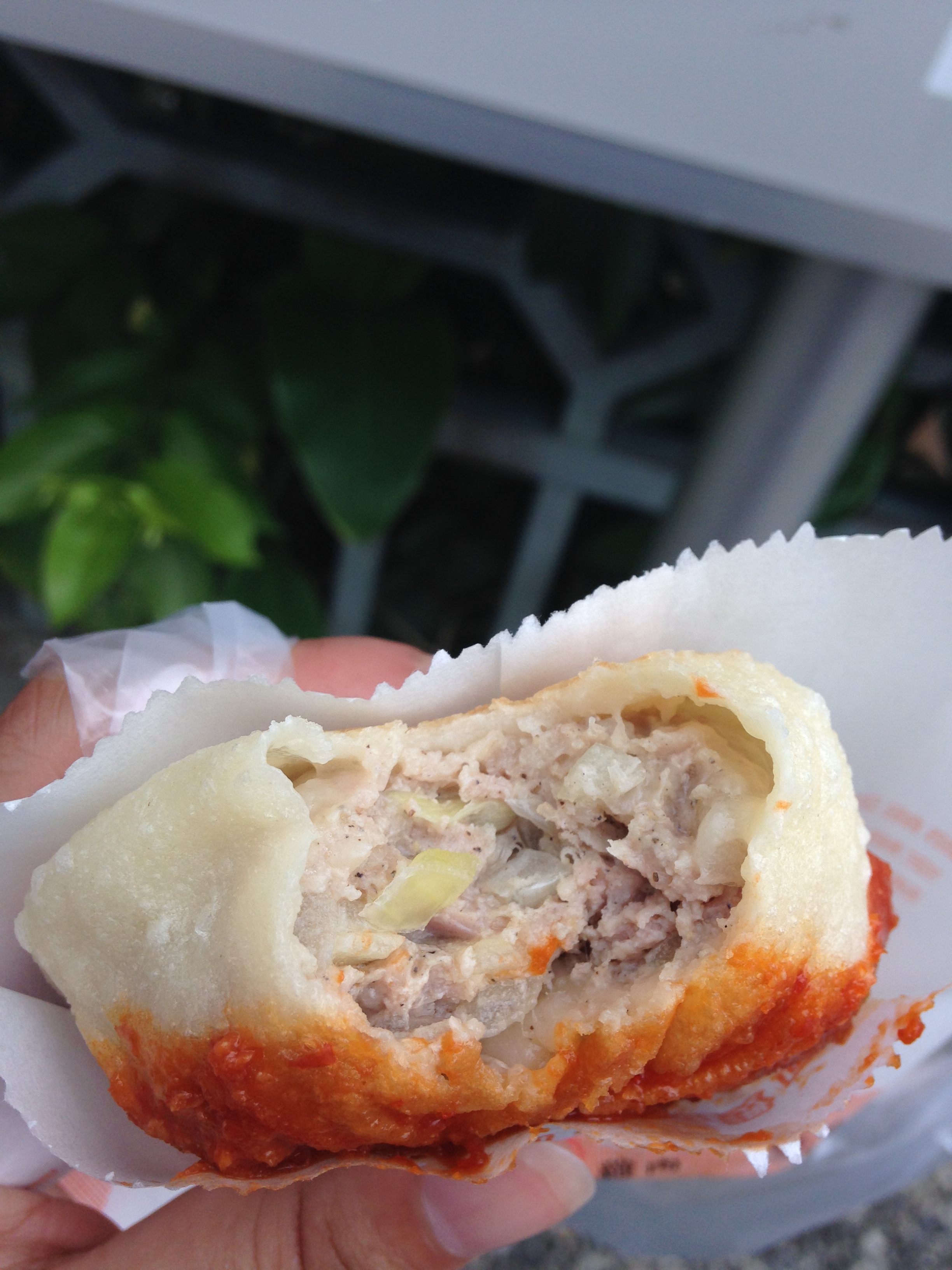 The 餡餅 was yummy, warm, and tasted a bit similar to fried 小籠包, in that the insides of the 餡餅 were juicy and a bit of savory soup slivered down my chin as I bit into it.