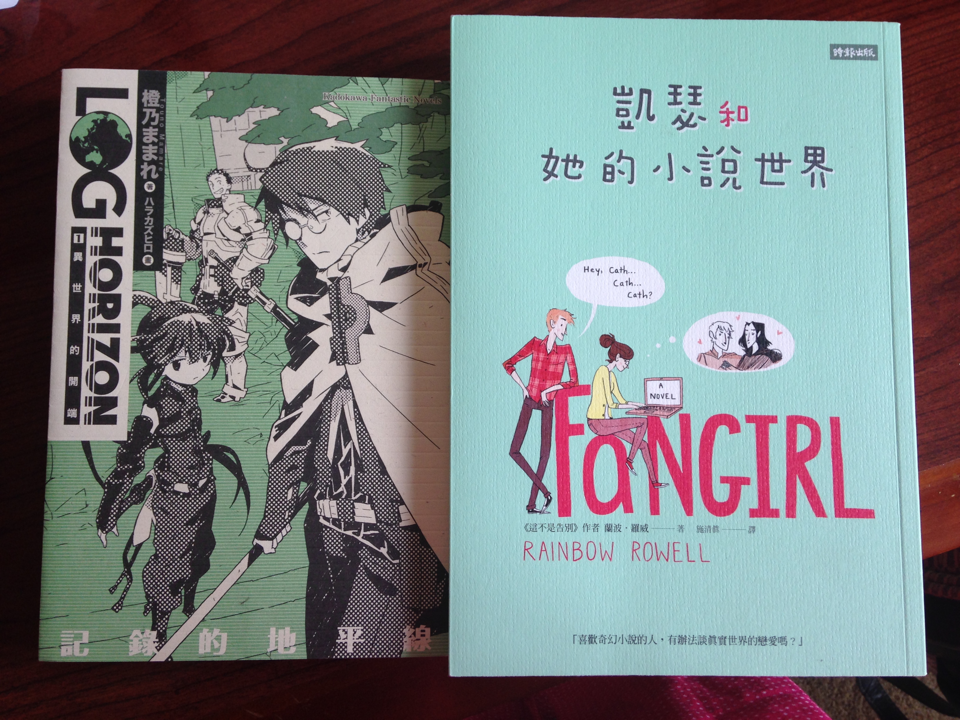 A Chinese translation of Fangirl (one of my favorite YA novels which I wanted to take with me to Taiwan but couldn’t find before I left) and the first volume of the Log Horizon light novel (which has yet to have an English translation released in America)!?